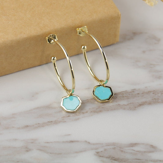PROTECTION - Turquoise Stone Charm & Hoop Earrings (Gold Vermeil)