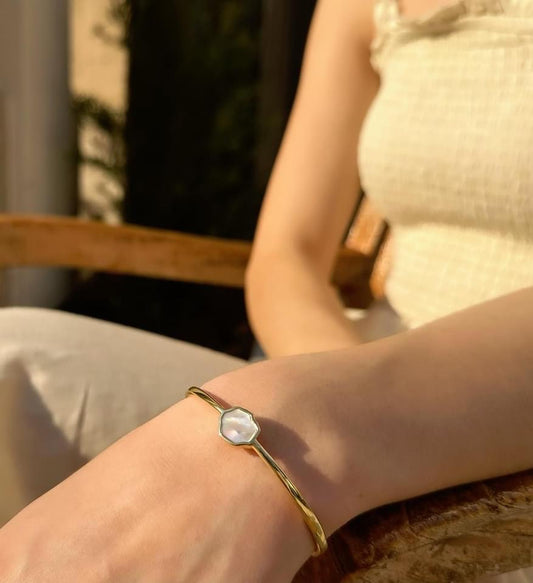 PEACE - Mother of Pearl Single Stone Cuff (Gold Vermeil)