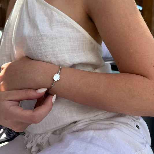 PEACE - Mother of Pearl Single Stone Cuff (Silver)