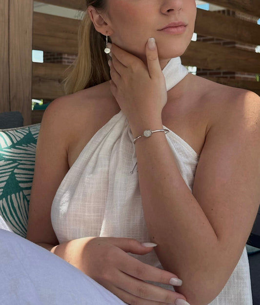 PEACE - Mother of Pearl Adjustable Bracelet (Silver)
