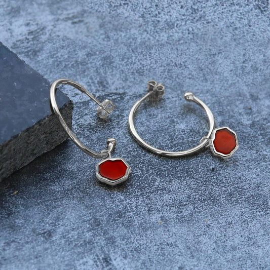 MOTIVATION - Carnelian Stone Charm & Hoop Earrings (Silver)
