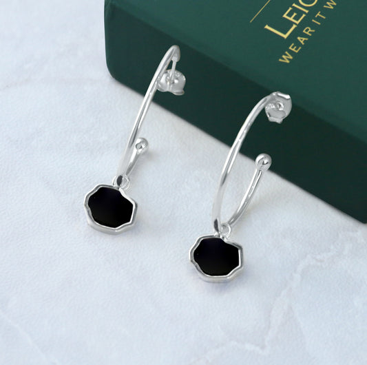 CONFIDENCE - Black Onyx Stone Charm & Hoop Earrings (Silver)