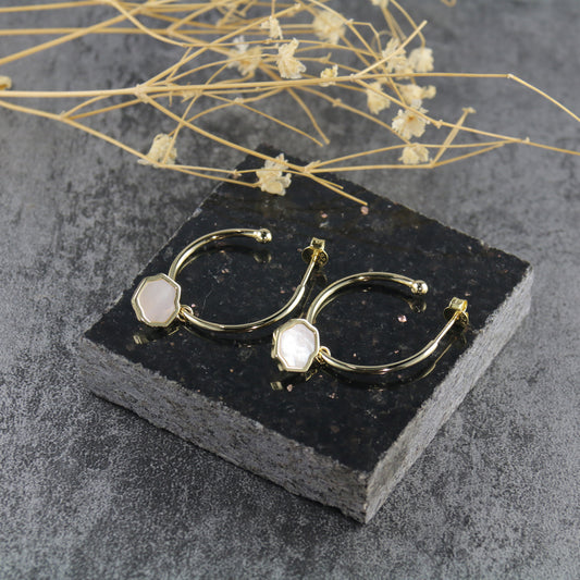 PEACE - Mother of Pearl Charm & Hoop Earrings (Gold Vermeil)