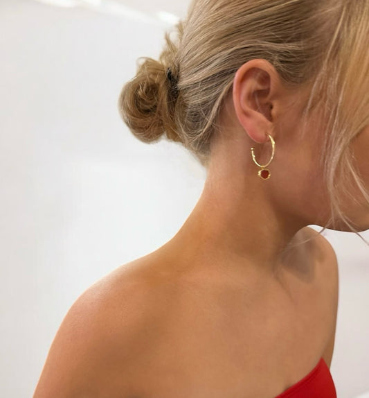 MOTIVATION - Carnelian Stone Charm & Hoop Earrings (Gold Vermeil)