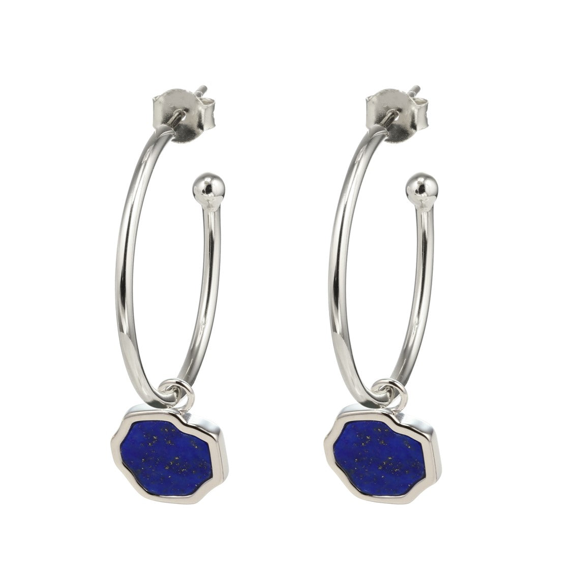 STRENGTH - Lapis Lazuli Stone Charm & Hoop Earrings (Silver)