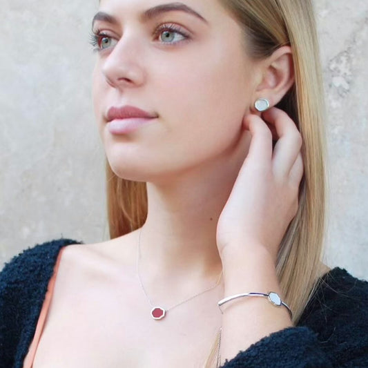 MOTIVATION - Carnelian Stone Charm & Hoop Earrings (Silver)