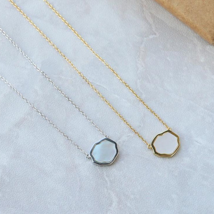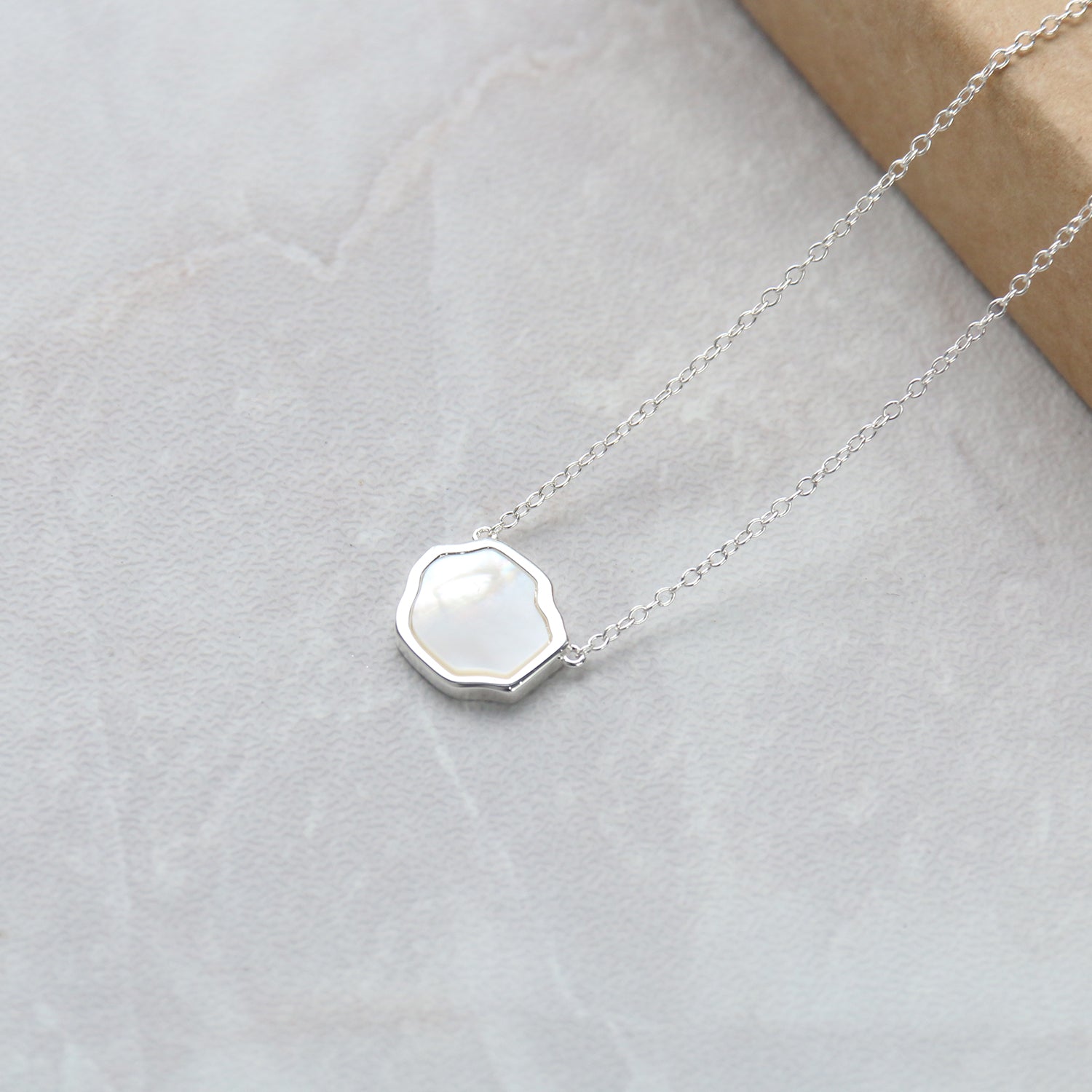 PEACE - Mother of Pearl Single Stone Necklace (Silver)